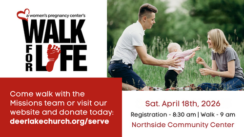 Join the Missions team on Saturday, April 18th at the Northside Community Center (8005 Oak Grove Rd) at 9 am for the Walk for Life with A Women's Pregnancy Center. A Women’s Pregnancy Center educates, supports and empowers women facing unplanned pregnancies with compassionate and professional care. To register to walk or donate today, click the link below.